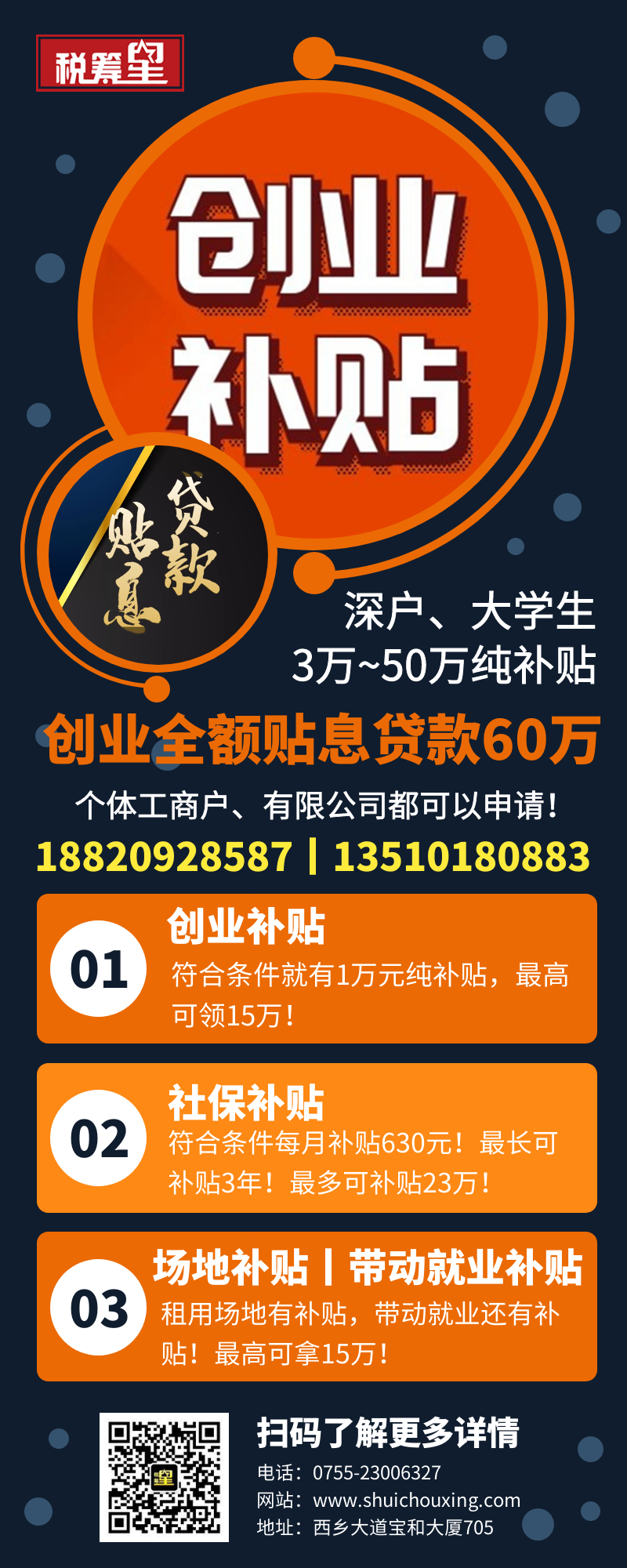 温馨提示:需要申请创业补贴的创业者,如果你是宝安区户籍宝安区公司,成立时间在2018年之后,符合条件的尽快与我们联系!符合条件100%通过!